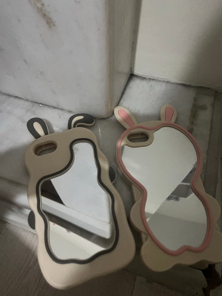 Bej renkte, aynalı yüzeyli ve şeffaf tasarıma sahip, tavşan kulaklı telefon kılıfı. Özgün counterculture tarzı sunar.