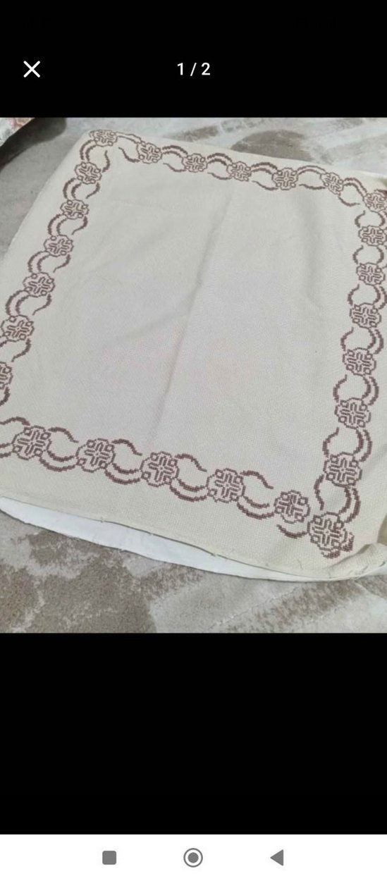Geleneksel desenli, gri nakışlı beyaz masa örtüsü. Yumuşak kumaşıyla farklı masa düzenlerine uygundur.