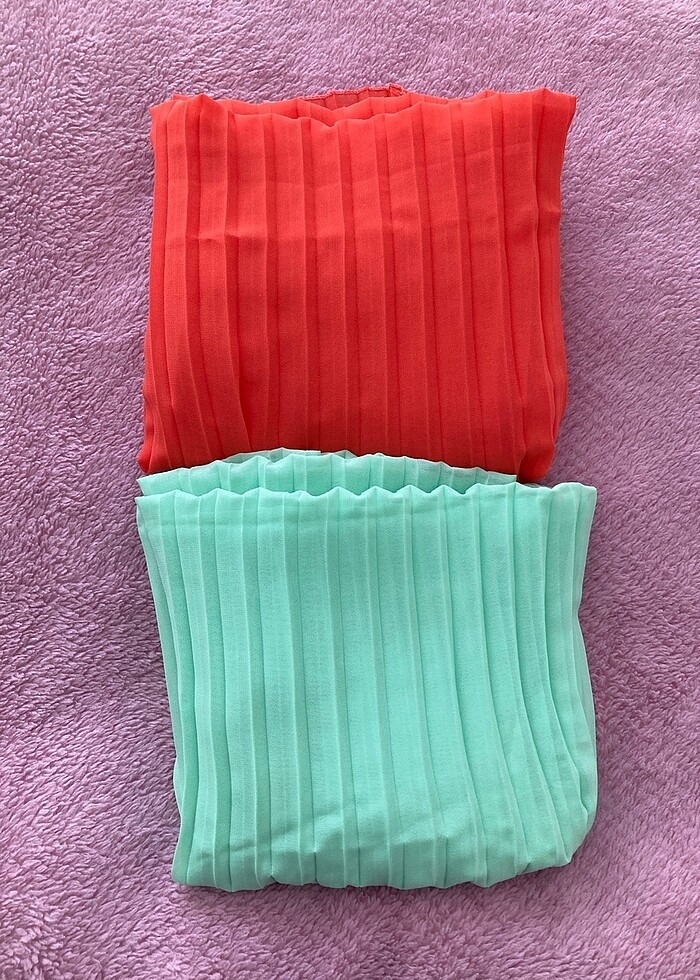 Turuncu olanı iki-üç sefer kullandım yeşil olanı hiç kullanmadım. İkiside sorunsuzdur. Piliseli şalların moda olduğu bir dönemde almıştım başta tatlı duruyor. Artık kullanmadığım için satıyorum.