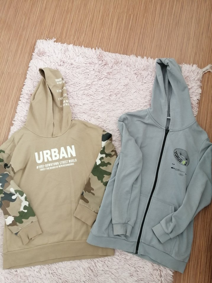 Kapüşonlu ve uzun kollu bu erkek sweatshirtü, rahat kesime sahiptir. Yumuşak kumaştan yapılmış, baskılı urban tasarımlı ve kamuflaj kolludur. Biri o den fermuarlı ikiside kapşunlu temiz ve sorunsuzdur.