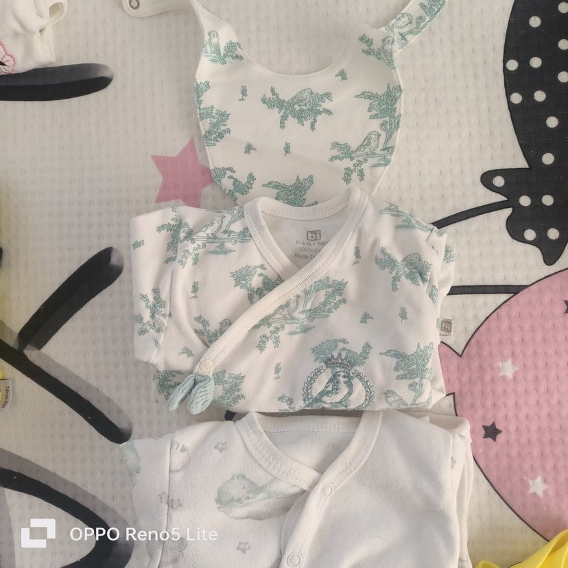 Beyaz ve pastel baskılı yumuşak sentetik kumaştan yapılmış bebek uyku seti. Sarma tarzı üst ve uyku için uyumlu aksesuarlar içerir. ️