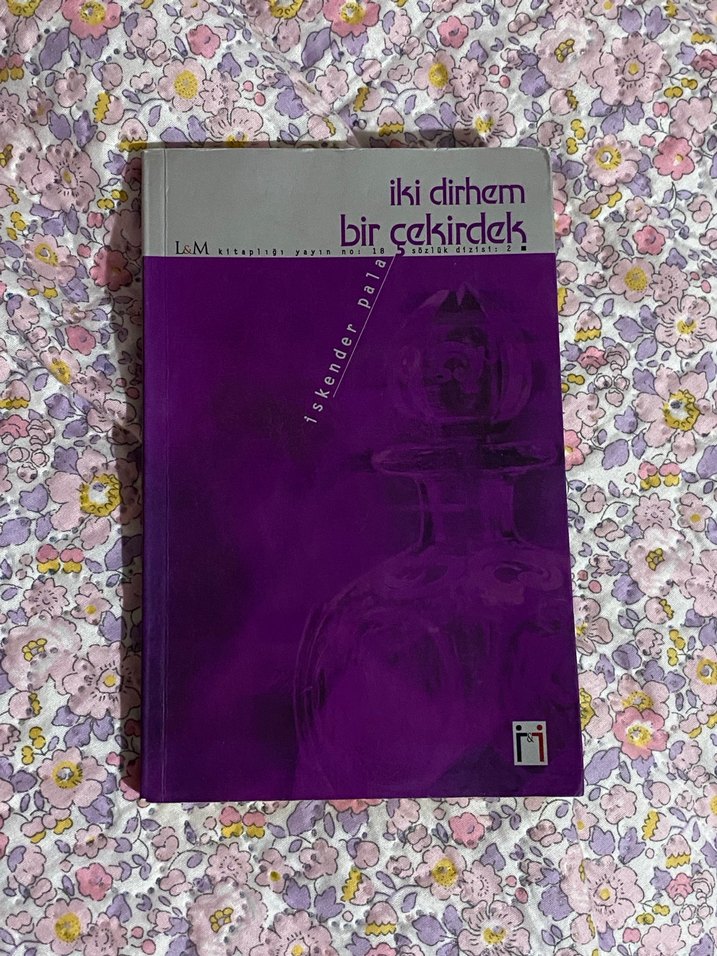 İskender Pala'nın "İki Dirhem Bir Çekirdek" adlı şiir kitabı, mor ve gri kapaklı.