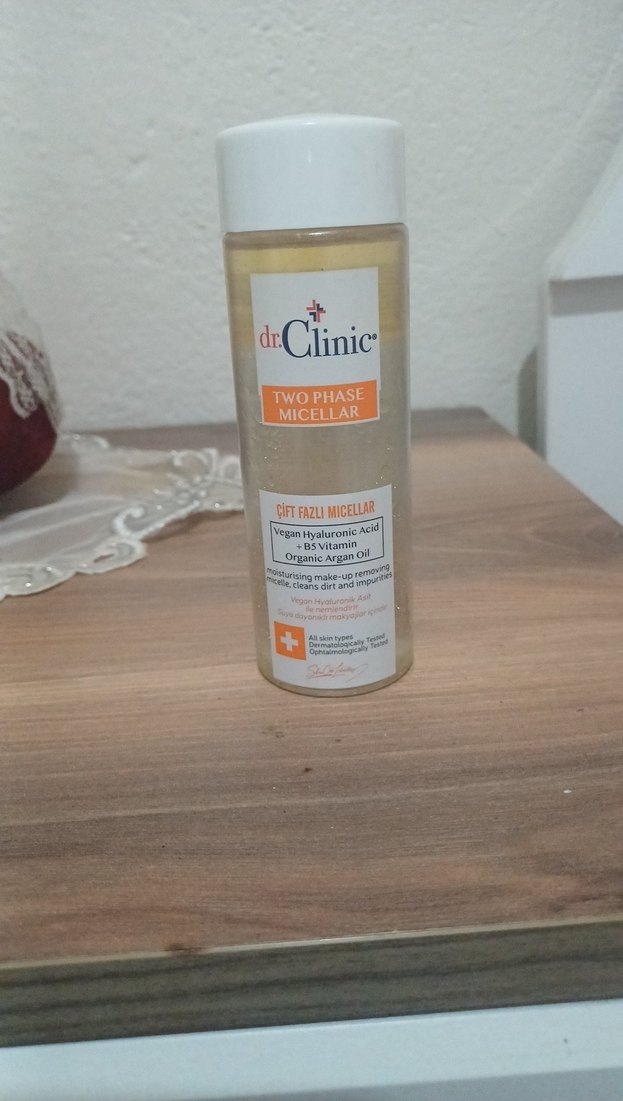 iki fazlı micellar temizleyici, vegan hyaluronik asit, B5 vitamini ve organik argan yağı içerir. Makyajı ve kirleri nazikçe temizler, cildi nemlendirir.