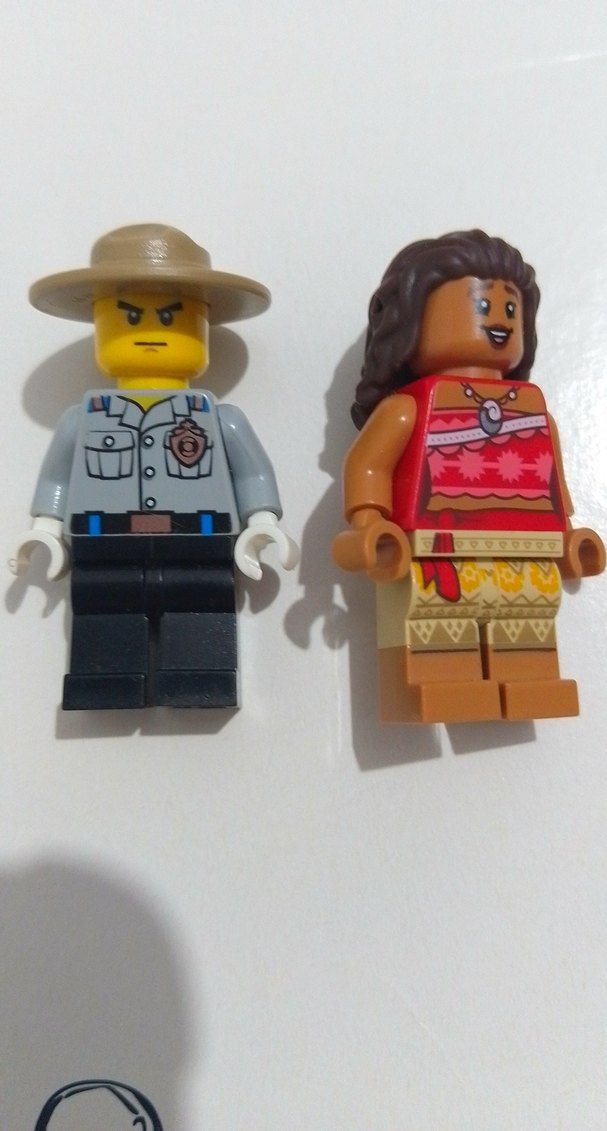 Gri üniformalı polis ve renkli kıyafetli kabile kadını olmak üzere iki Lego figürü.