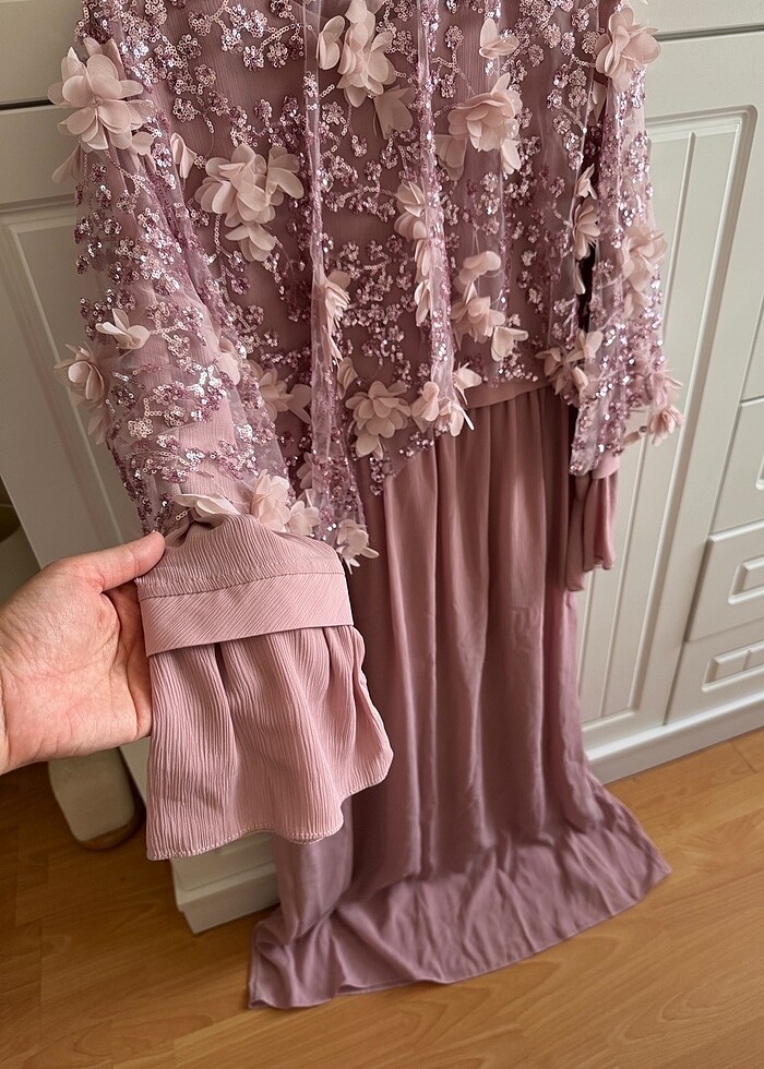 Pelerini çıkıp günlük kullanıma uygun da oluyor. Pelerinle özel günlerde de giyilebiliyor. 1 kez nişanda giyildi. 40 beden uyumlu. Loreen marka