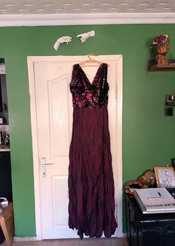 İki Parçalı Pul Payetli Bordo Abiye 44-46 bedene uyar Özel dikimdir Üst parça İki koltuk altı arası 49 cm Üst parça boy 43 cm Abye iki koltuk arası 56 cm Abiye boy ön uzunluğu 168 cm Abiye boy arka uzunluğu 180 cm Ölçüleri yazmaktadır. İade kabul edilmemektedir. Fiyatları uygun koyuyorum. Pazarlık yoktur. Alacak olana şimdiden hayırlı uğurlu olsun