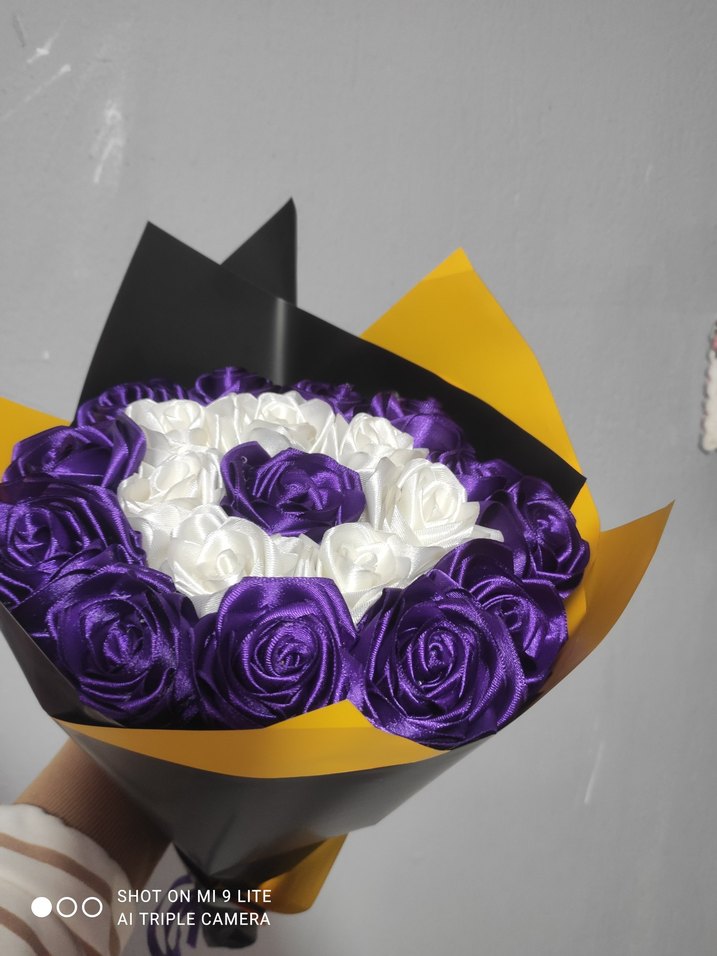 Mor ve beyaz gül buketi. istenilen renk ve sayıda yapılır.