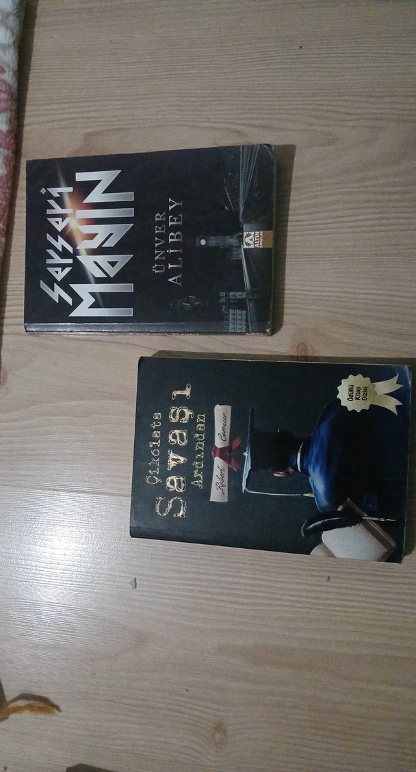 Ünver Alibey'in "Sessizliğin Manası" ve Arzandara'nın "Çikolata Savaşları" romanları, siyah kapaklı ve kullanılmış durumda. tekli satışta yapılır