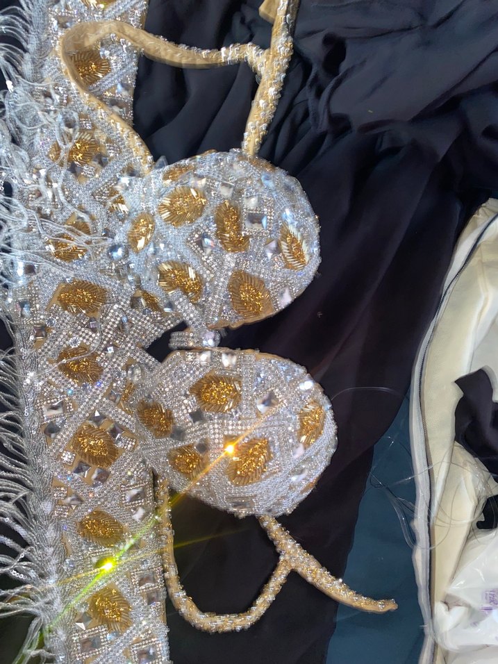 Özel dikim oryantal kostümüdür iki siyah kolluk bir adet siyah etek kesinlikle siyahta dolma yok fotografta flastan öyle çikmis çok canli iki beyaz koltuk bir adet beyaz etek Ayakkabi 38,5/39 /40 Oryantal büstiyeri üstü Oryantal kemeri uyumludur Altin islemeli, parlak payetler ve kristal detaylara sahip kadin el zinciri. Parti için avant-garde tarzda bir aksesuar bir ay kullanilmadi diyebilirim