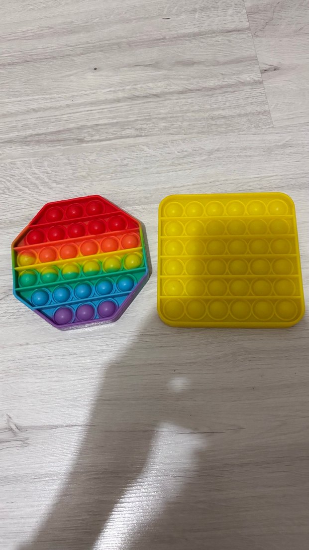 iki tane renkli Pop It Stres Giderici Oyuncaklar