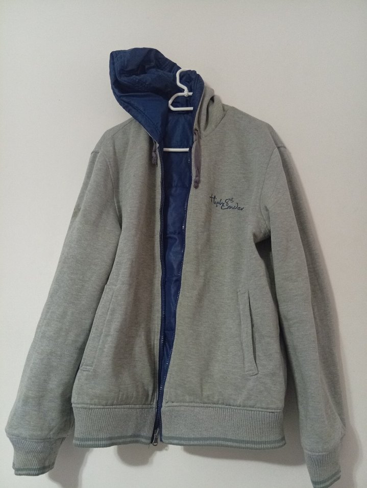 Gri renkli, fermuarlı erkek sweatshirt. Notched lapel yaka, uzun kollu ve bol kesim. Sokak stili ve gündelik kullanım için uygundur. Yumuşak ve rahat kumaş. iki taraflı giyilir