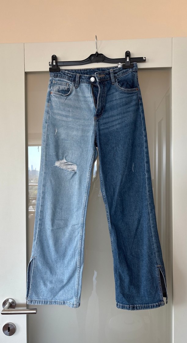 Yumuşak soft mavi ve parlament mavi iki tonlu, fermuarlı , salaş kesim kız çocuk kot pantolon.Tam boy ve sokak stiline uygun, günlük kullanıma uygundur.Geçen yazın H&M katalog ve manken ürünüdür.Büyüğümü bulsam tekrar alacağım.Koy kumaşı yumuşacık, inanılmaz rahat ve çok güzel dökümlü duruyor üstte.Çok uyguna koyuyorum, kaçırmayın derim Çok temiz ve sayılı kullanıldı, bu sene malesef kızıma olmuyor