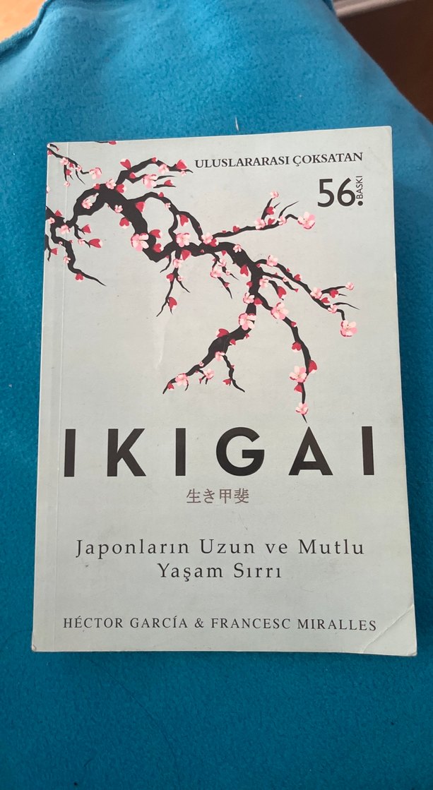 Héctor García ve Francesc Miralles'in yazdığı 'İkigai', Japonların uzun ve mutlu yaşam sırrını anlatıyor. Kapakta çiçekli dal resmi ve 56. baskı bilgisi yer alıyor.