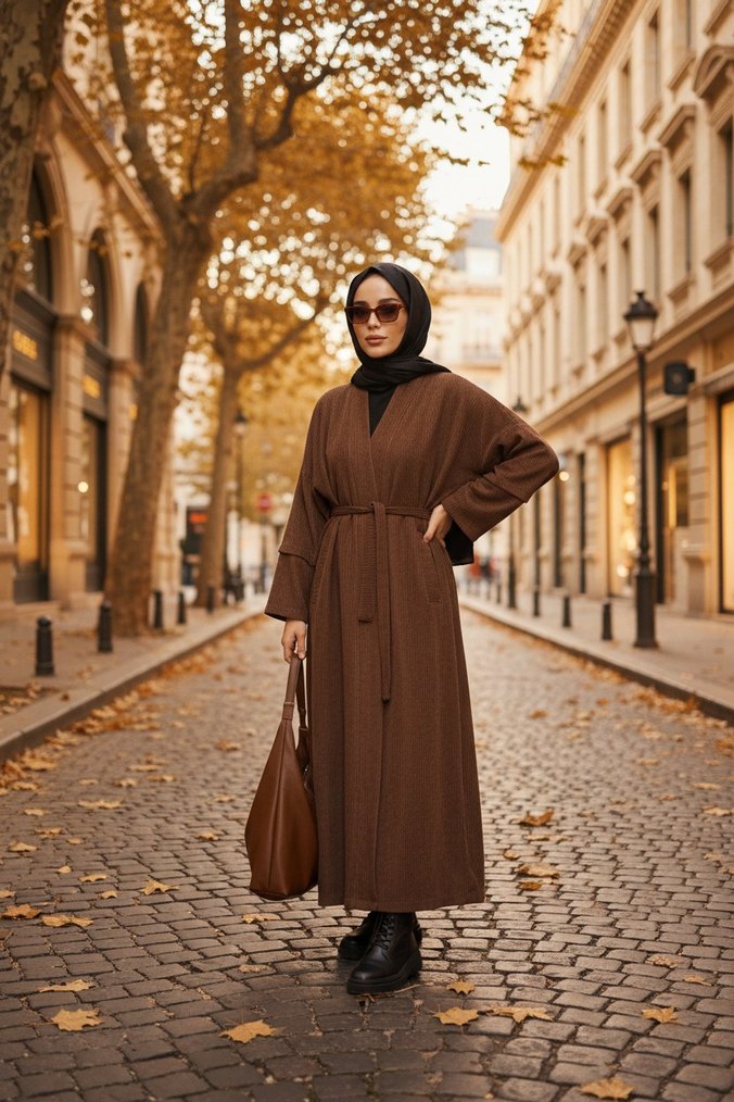 İkili abaya takım. Birkaç kez giyildi, tertemiz ve çok kaliteli. Kadife kumaştan, haki renktir. İç elbise: – Uzunluk: 131,5 cm – Göğüs altı: 53 cm Dış abaya: – Uzunluk: 136 cm – Göğüs altı: 57 cm – Kol uzunluğu: 56 cm Zülays markası