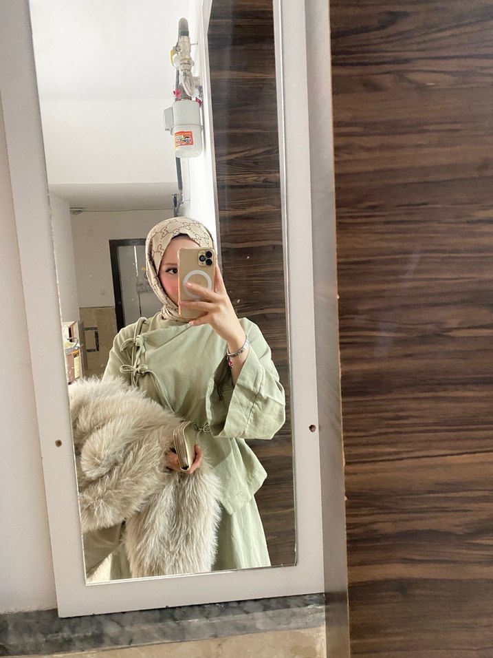 İkili yeşil takım beli lastikli keten kumaş
