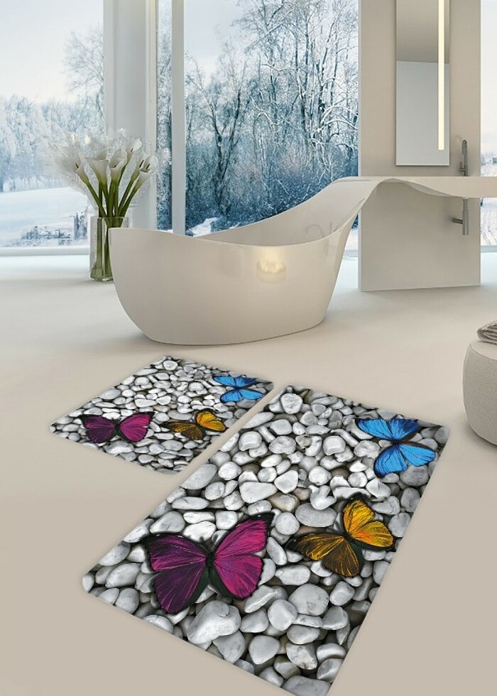 Dot taban dijital baskı banyo ikili paspas seti. Banyonuza renk katacak desenler.