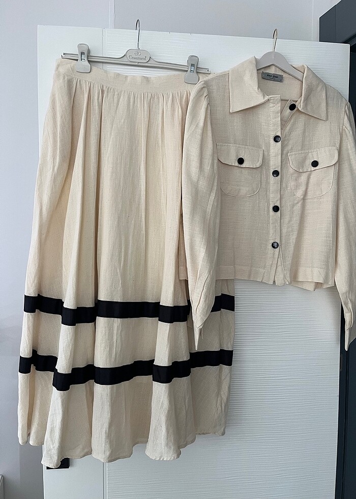 İkili etek bluz takım. Krem rengidir. Hiç kullanılmadı, etiketini kopartmış bulundum. Eteğinin içinde görseldeki gibi astarıda vardır. Keten kumaştır. M beden. Ürün etek boy 94 cm, etek önden bel 42 cm toplam bel 84 cm. Ürün üst boy 51 cm, üst önden en 51 cm. #kadın #kadınikilitakım #takım #ikilitakım #etektakım #ikilietektakım #kadınikilietektakım #etekbluztakım #etekcekettakım #krem #kremtakım #ikilikremtakım #mbeden #mbedentakım #mbedenikilitakım #salihçelebifashion
