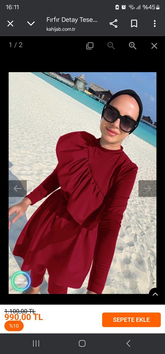 ikili haşema takım 40-44 beden uyumlu rengi bordo herhangi bir sorunu yok Sadece iki defa kullandım temiz bir ürün çabuk kuruyan kumaş