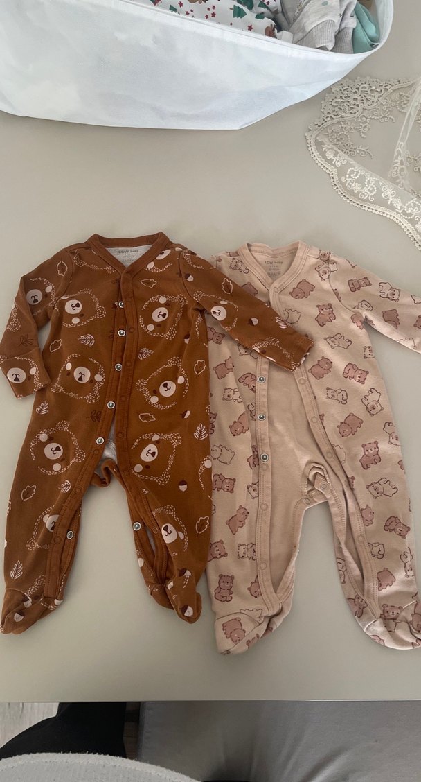 Pastel kahverengi renkte, düğmeli ve uzun kollu bebek tulumu. Az kullanıldı deformesi yoktur. 1-3 ay