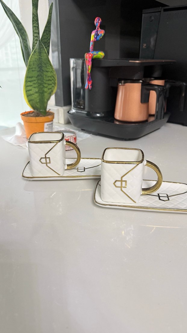 Altın saplı, beyaz kare tabağı sunum şeklinde uzun 2 li takım sıfır ürün