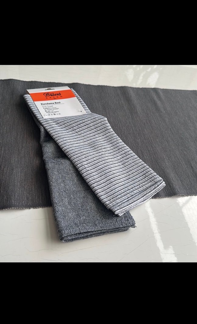 SIFIR ÜRÜN, 2 Adet, gri, beyaz tonlarında mutfak kurulama bezi. Bursa Koza Han’dan alınmıştır. Her biri 47 x 67 cm’dir.