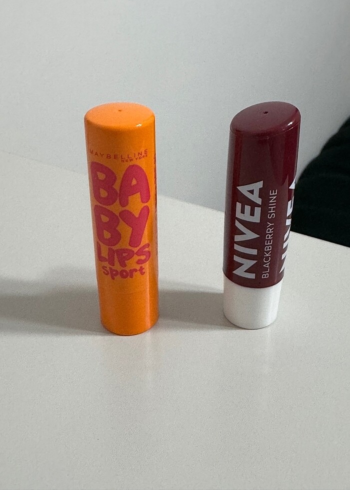 Nivea cherry ve maybelline baby lips. İkisi de birkaç kez anca kullanılmıştır boyutlarından bellidir.