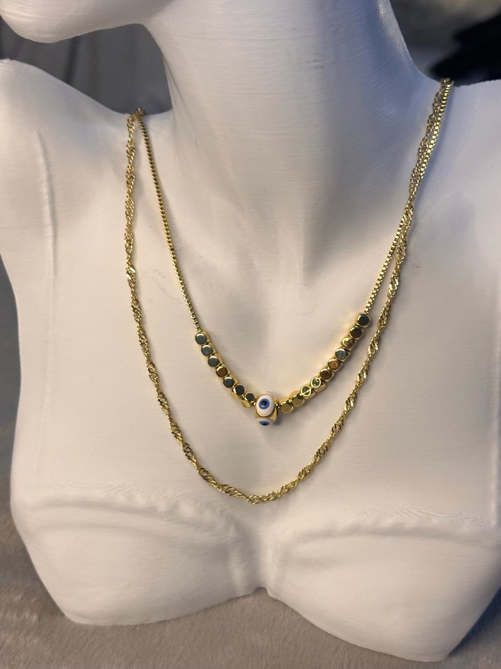 İKİLİ NAZAR BONCUKLU ÇELİK KOLYE