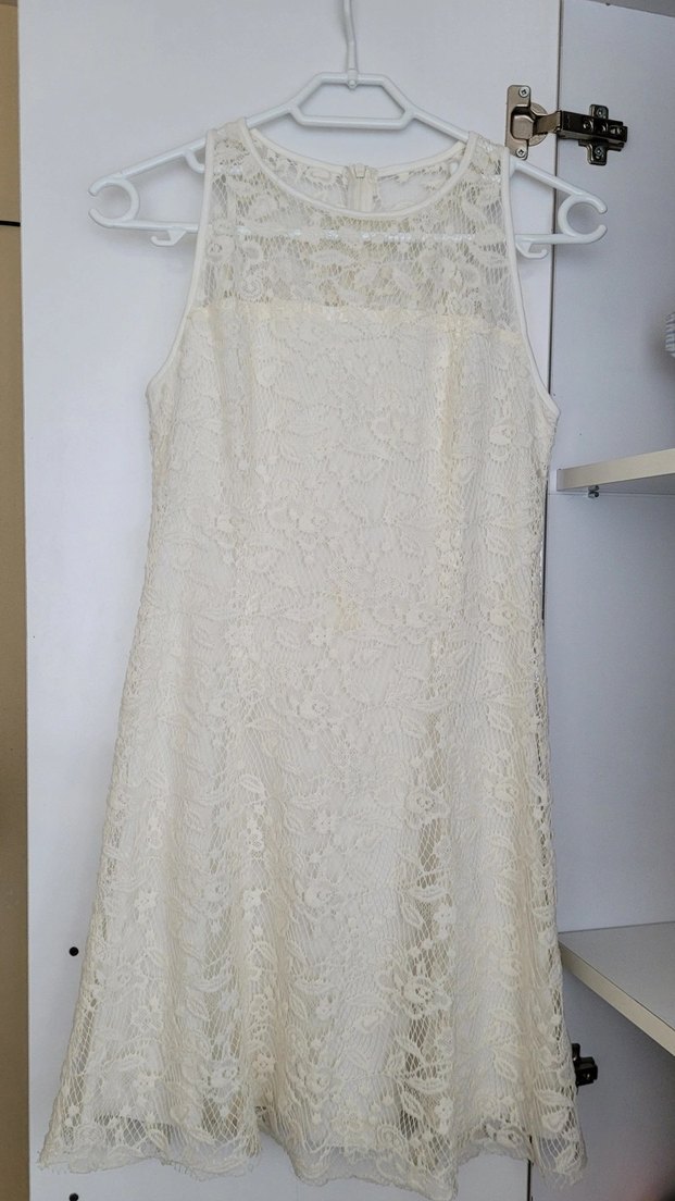 beyaz olan üstü dantelli diz üstü bi elbise mavi olan kot elbise ikili şekilde