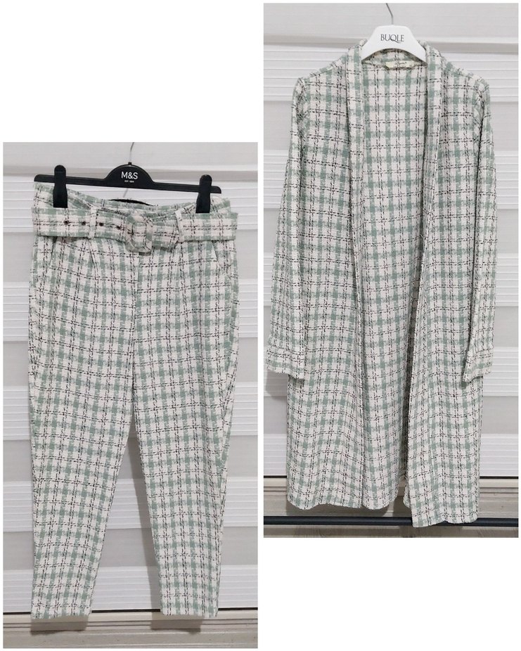 Beden 40 ikili Takım Üst İki koltuk altından göğüs ölçüsü 46 cm boyu 98 cm Pantolon bel 38 cm boyu 90 cm paça genişliği 13 cm giyilmeye bağlı koltuk altlarında ve Pantolon A bölgesinde pamuklanma ve ip çekiği mevcut belirtilenler görsellere eklendi teit edebilirsiniz #takım #elbise #tesettürelbise #tunik #tesettürtakım #40bedentunik #40bedenceket