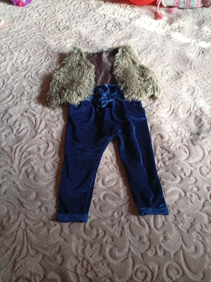 Kız bebek için kolsuz kürk, mavi kadife alt . Yumuşak ve desensiz kumaş kullanılmış. yeni gibi az kullanıldı