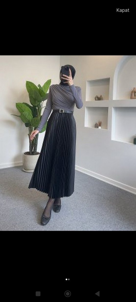 Siyah renkte, sentetik kumaştan üretilmiş, pilili ve regular fit uzun etek. Minimalist ve çağdaş tarzıyla günlük kullanıma uygundur.