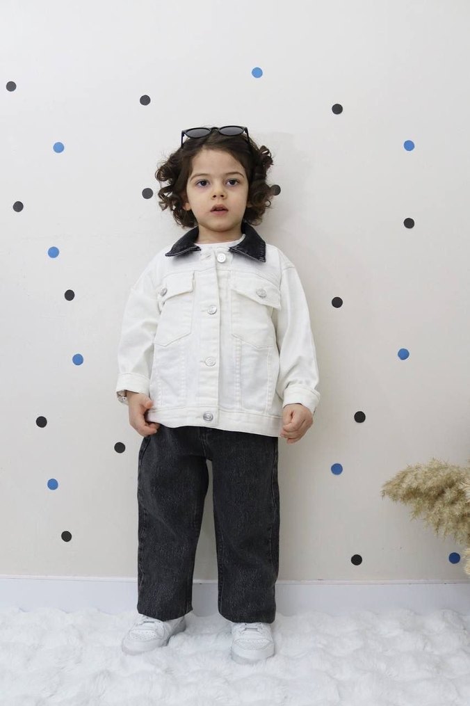 Siyah ve Beyazın En Havalı Uyumu! Klasik denim tarzına modern bir bakış! Beyaz ceketin ferahlığı ve siyah kot pantolonun asilliğiyle çocuklarınız sokak stilinin öncüsü olacak. • Tasarım: Siyah yakalı beyaz ceket ve yüksek kaliteli siyah denim pantolon kombinasyonu. • Kumaş: %100 coton yıkanmalı kot kumaş; yumuşak dokusuyla çocukların hareketlerini kısıtlamaz. • Kalıp: Tam kalıp güvencesiyle, bedende sürpriz yaşamadan güvenle tercih edebilirsiniz. Ürün Detayları: • Bedenler: 4-5 / 5-6 / 7-8 / 9-10 / 11-12 Yaş