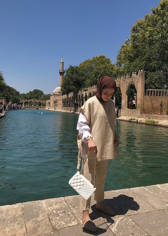 Yanları açık bağcık detaylı, 36-38 bedene uyumlu, pantolon beli lastikli. gömlek dahil değildir.hafif ön kısmında ve arka kısımlarında kusurları var. iade yok.