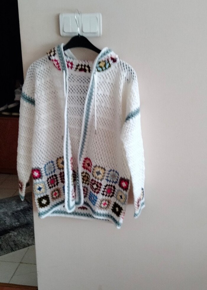 Ürün el örgüsu hiç kullanilmadi .Çanta ve Kapüşonlu.40-44 beden aralığına olur.