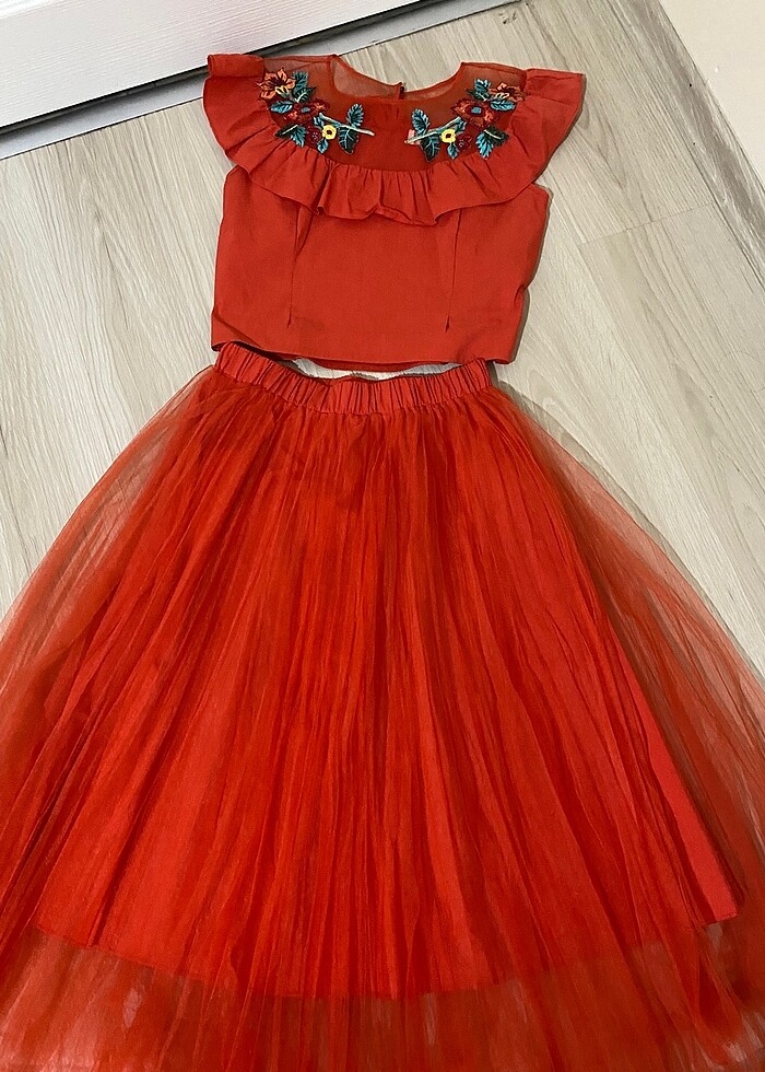 tütü etek beli lastikli, üstü çiçek desenli nakışlı
