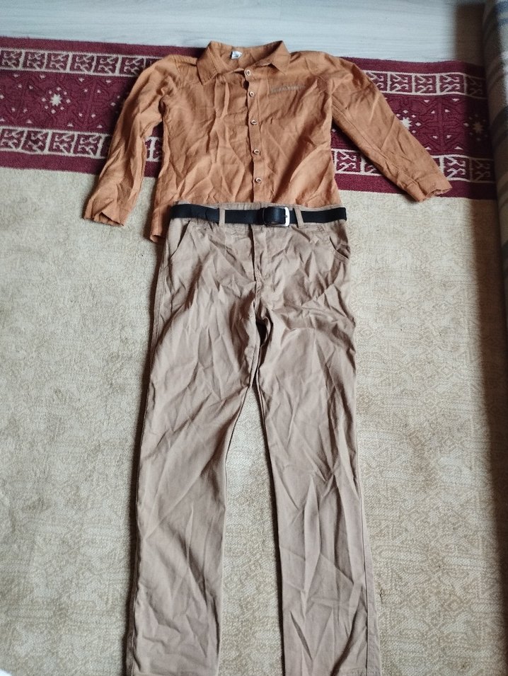 gömlek -pantolon takımı . Kemer hediyedir. temiz kullanıldı kullanıma engel sıkıntısi yoktur 8.9 yaş uyumlu.bi kac kez giyildi . sol paça kısmında ufak bı tüylenme tarzi bişey var son resimden belirtildi . fiyatı uygun tuttum.