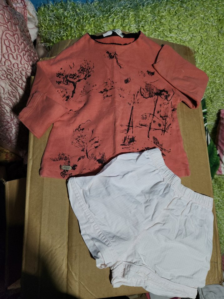 Cocuk takımı, uzun kollu bisiklet yaka üst ve beyaz lastikli şorttan oluşur. Yumuşak tekstil kumaş, rahat ve şık tasarım sunar.