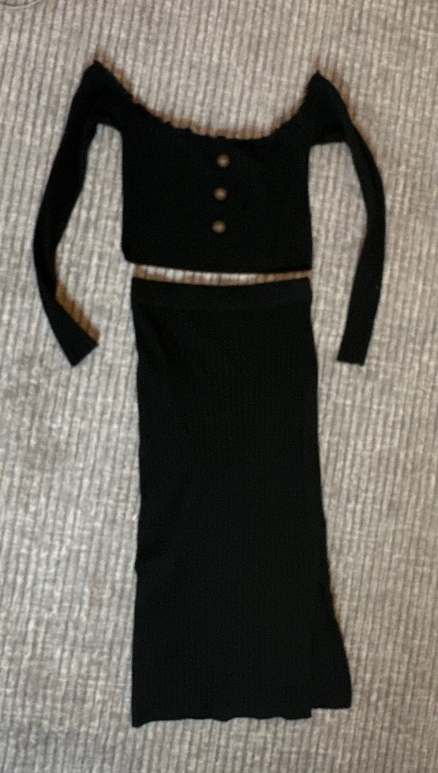 1 kez evin içinde giyindim yırtmaç detaylı etek ve omuz açık uzun kollu crop