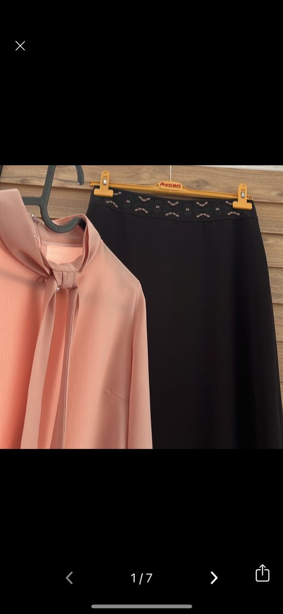 Her ortam için uygun, nakış detaylı, siyah uzun kalem etek. Gömlek İpek gibi kumaştan, dökümlü ve rahat kalıplı. Sitare marka