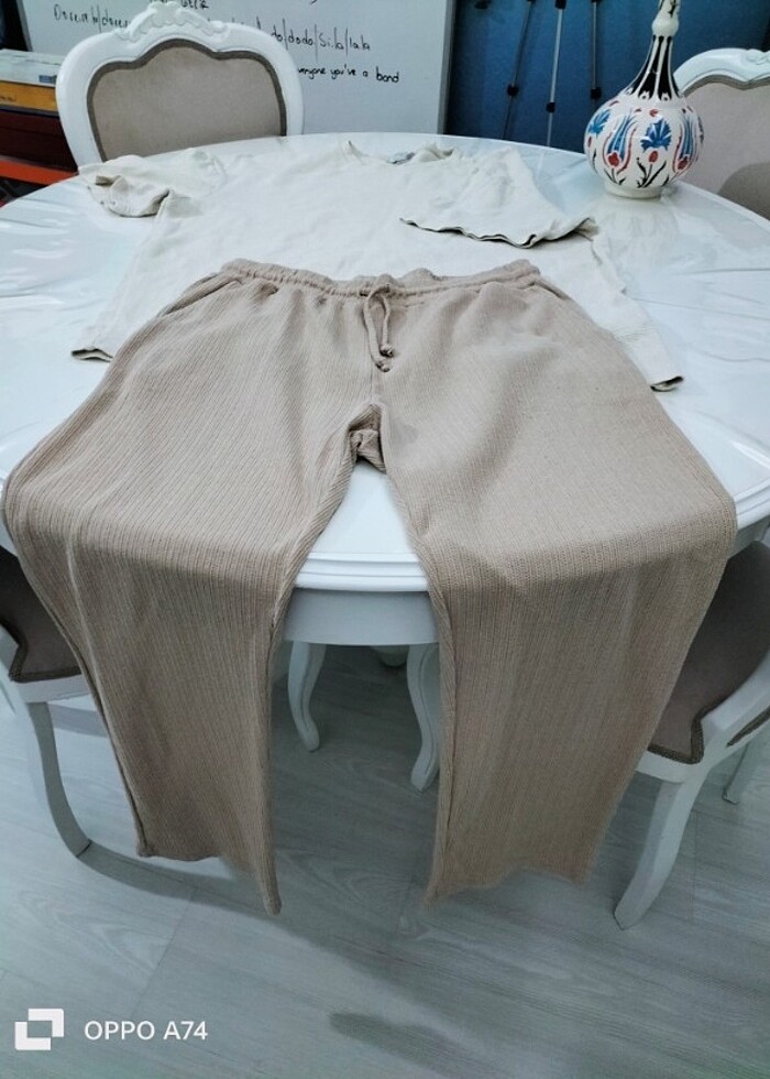 ürün ikili takım konsept yapılmıştır alt üst farklı marka olup üst DeFacto marka alt wong marka olup kumaşları Üstün kalitedir üst olan ketenimsi kumaş türündedir alt ise dökümlü triko tarzında kesinlikle şık kaliteli ürünlerde tavsiye ederim 64 cm uzunluk ise 75 cm alt ölçüleri belli hem lastikli hem bağcıklı olup esnetilerek alınmış ölçü 50 cm basen ölçüsü 66 cm uzunluk ise 102 cm'dir ihtiyaç fazlası alana hayırlı olsun kesinlikle ürün iadesi yoktur bilginize