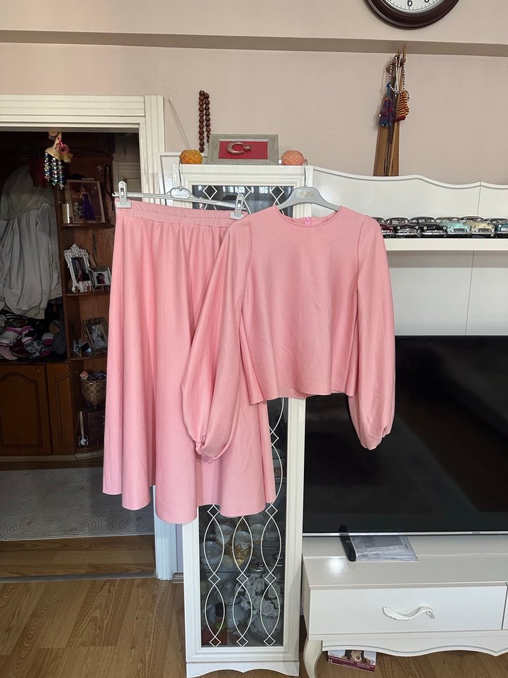 İkili takım  boyu 57 iki koltuk altı 51 eteğin boyu 92 deli30 belindeki lastiği girince48