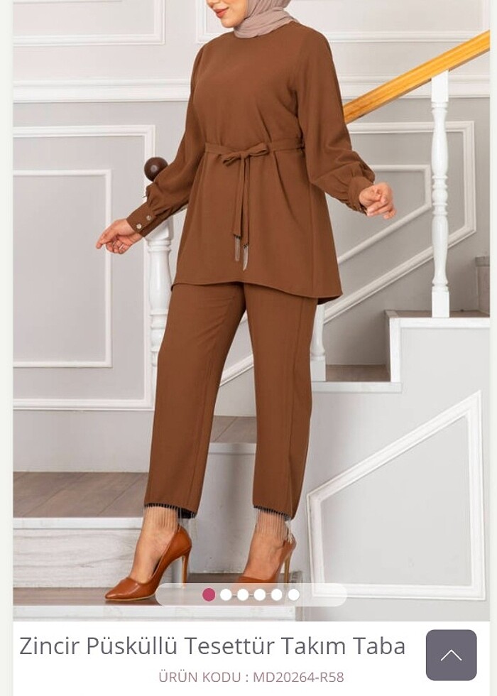 İkili etiketli püskülü takım kahverengi