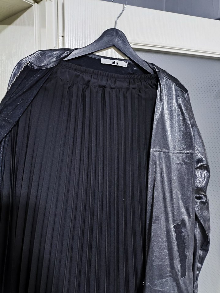 ikili takım , Siyah Pilili Uzun Keten Etek fermuarlı ceket