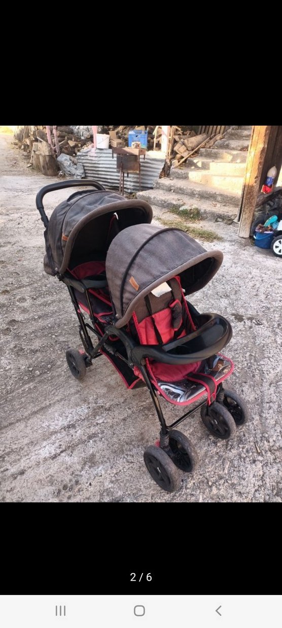 Kahverengi çiftli bebek arabası, iki oturma yeri ve tente, tutma kolu ve ön tekerleklerle kolay kullanım sağlar. İki çocuk için rahat ve kullanışlıdır. temiz ve az kullanılmıştır teklif gönderebilirsiniz rüzgarligida mevcuttur yanında gönderim olacaktır.