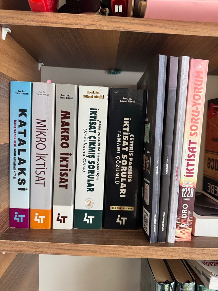 2 farklı yayınevinin iktisat kitapları. Üzerine çözmedim ikinci tekrarı yapabilmek için temizdir bazı yerleri fosforlu kalemle çizmiştim. Ayrı ayrı da satabilirim. LÜTFEN FİYAT ALINIZ.. Diğer dersler de var fotoğrafını çekmeye vaktim olmadı ama hukuk muhasebe maliye