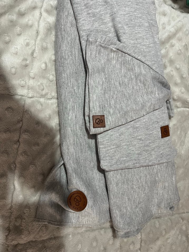 Gri renkli sling, şapka ve taşıma çantası. Yenidoğan döneminde bebek taşımak için harika bir ürün.