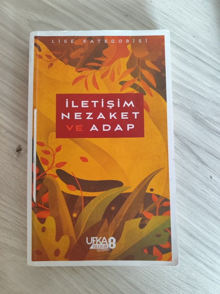 "İletişim Nezaket ve Adap" başlıklı kitap, iletişim, nezaket ve adap temalarını işler. Sonbahar renklerinde sıcak bir kapak tasarımına sahiptir.