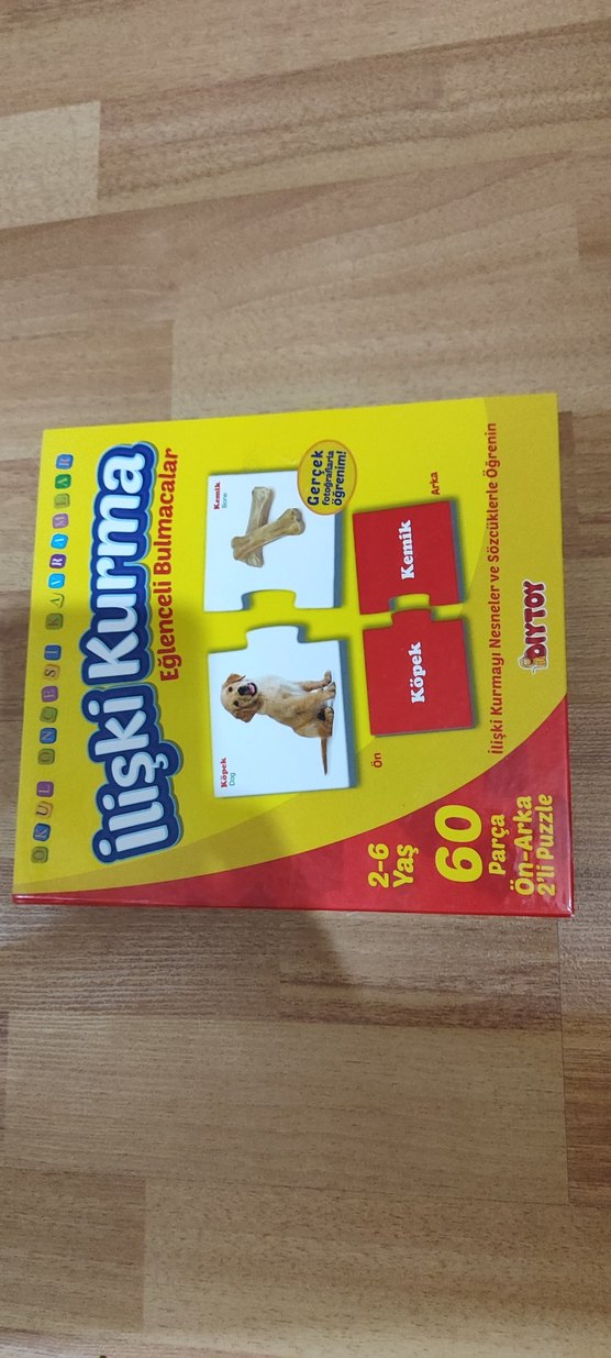 2-6 yaş çocuklar için 60 parçalı eğitici puzzle seti. Gerçek nesneler ve kelimelerle ilişki kurmayı öğretir.