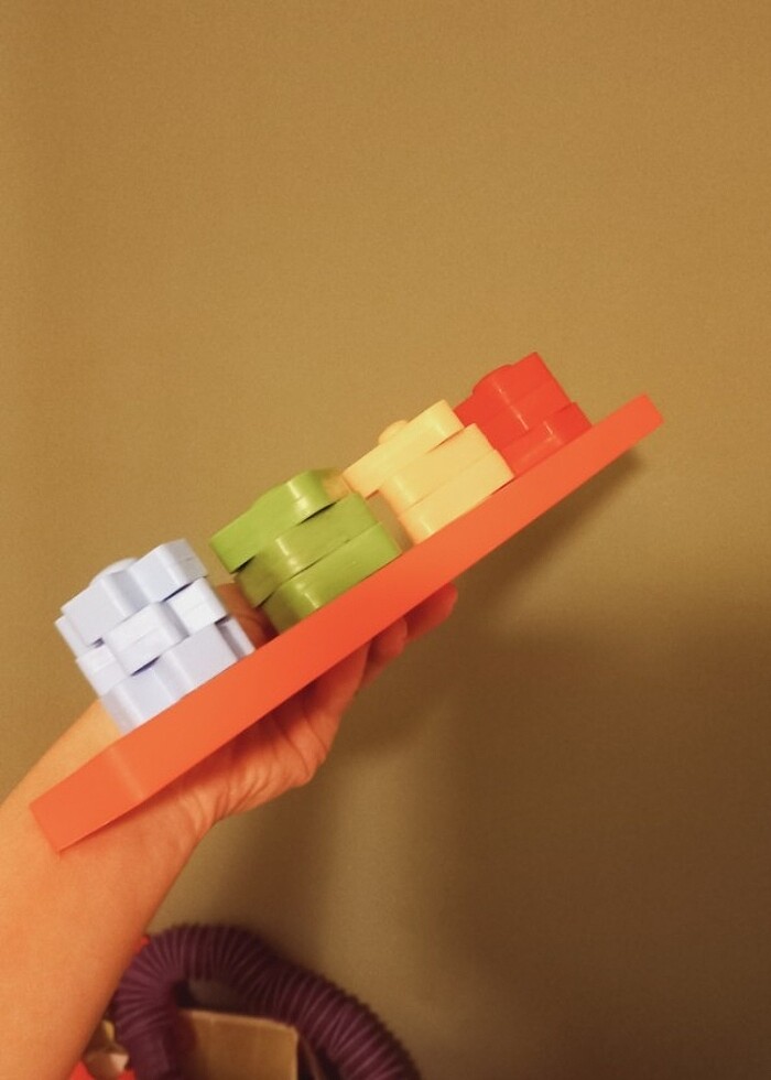Şekilleri bulup takıyor çeviriyor parmak kaslarını güçlendiriyor. Şahane bir oyuncak yepyeni duruyor