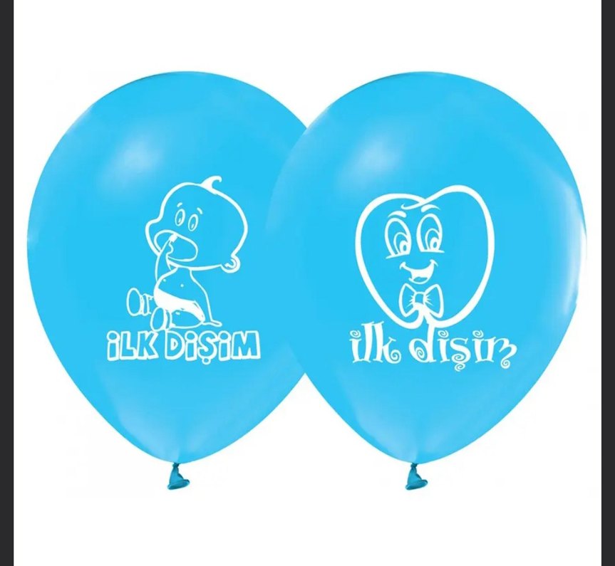 62 adet var. Yeni ürünlerdir. Tane olarakta alabilirsiniz. Tanesi 8 lira. #balon #ilkdişim #dişbuğdayı #ilkdişimçıktıbalon #ilkdişimbalon Mavi balonlar üzerinde bebek ve diş figürleri, "ilk dişim" yazısıyla süslenmiştir.